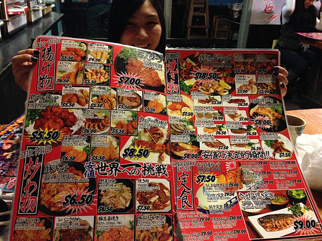 下の写真は「ケンカ」のメーニューです。大好きな日本食がずらりと並んでいてとても興奮しました!