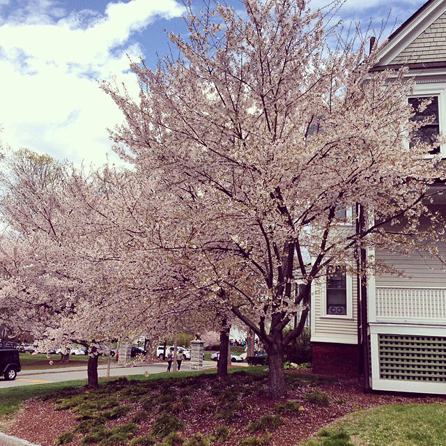 (写真:スミス校内で日本の桜が咲いていました。春のスミスはとてもキレイですよ!)
